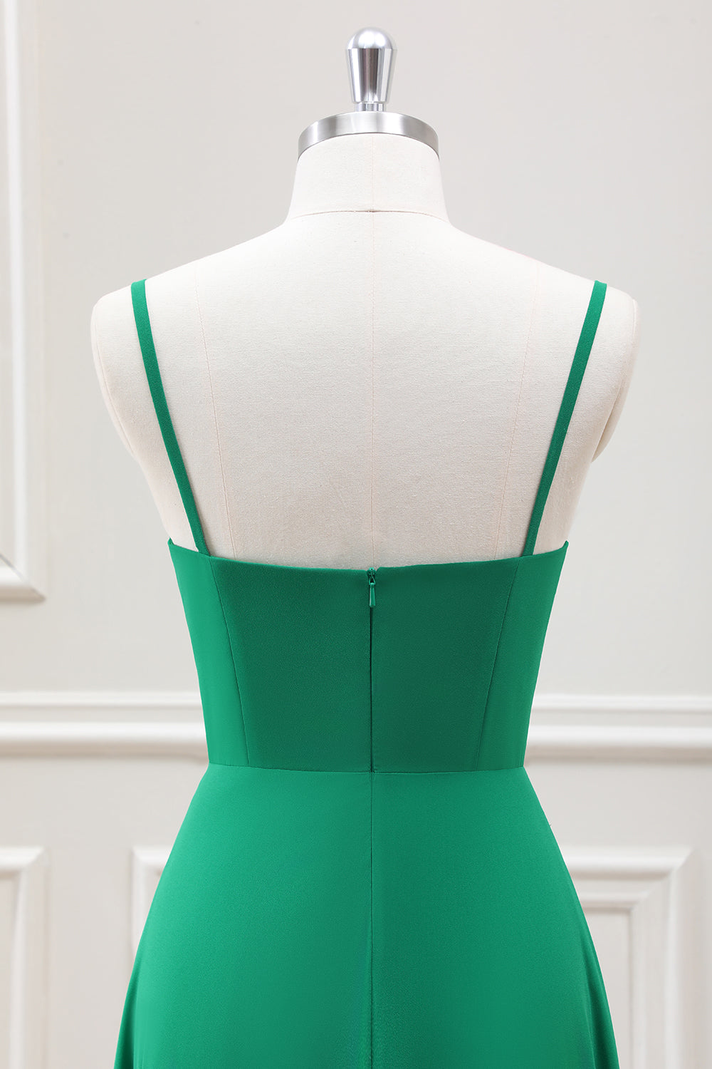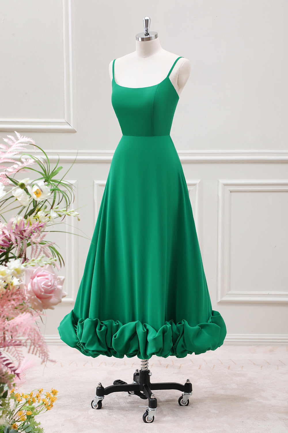 Home New Arrivals A Line Spaghetti Straps Green Tea Length Dress