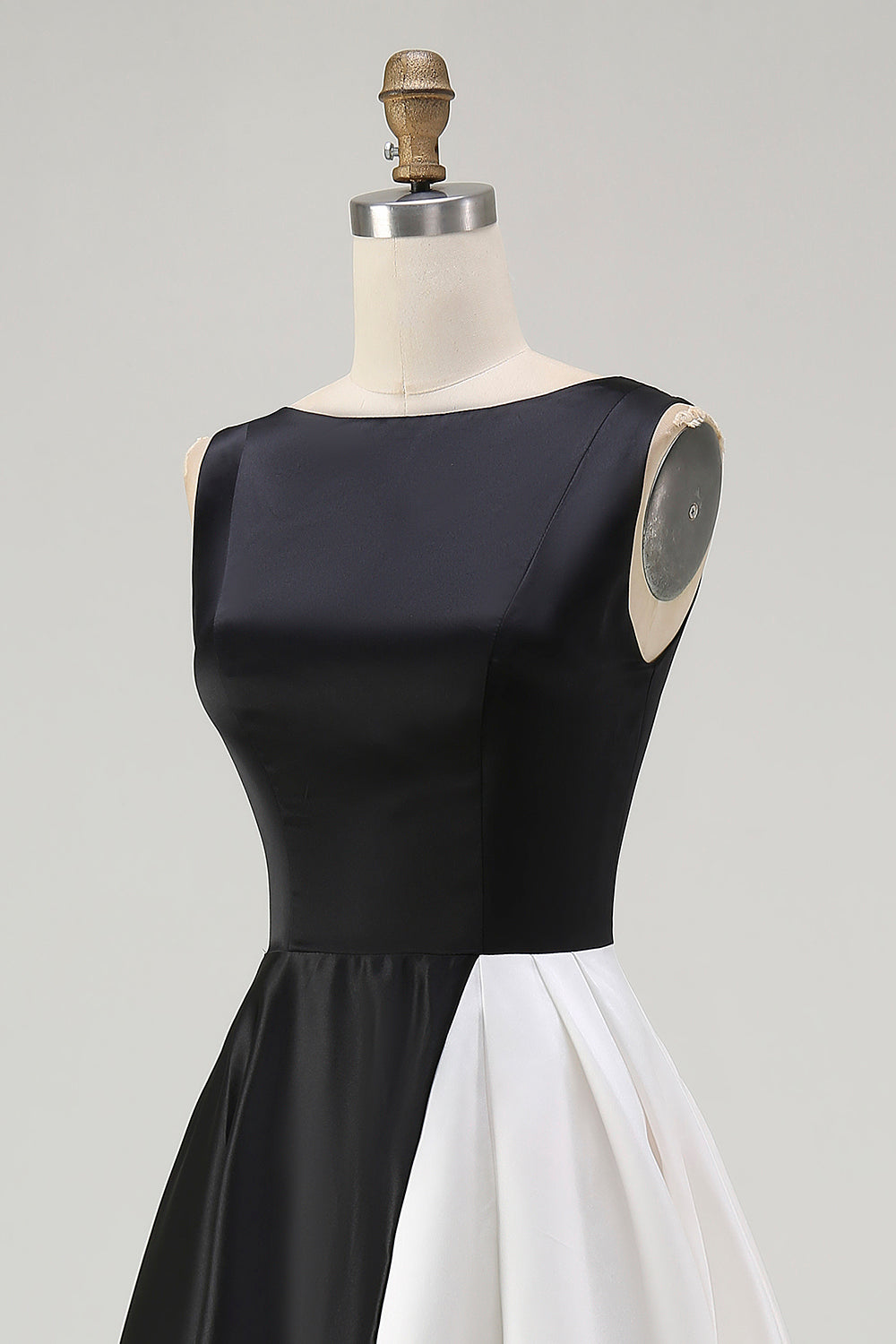 Home New Arrivals Black and White Boat Neck A Line Midi Formal Dress