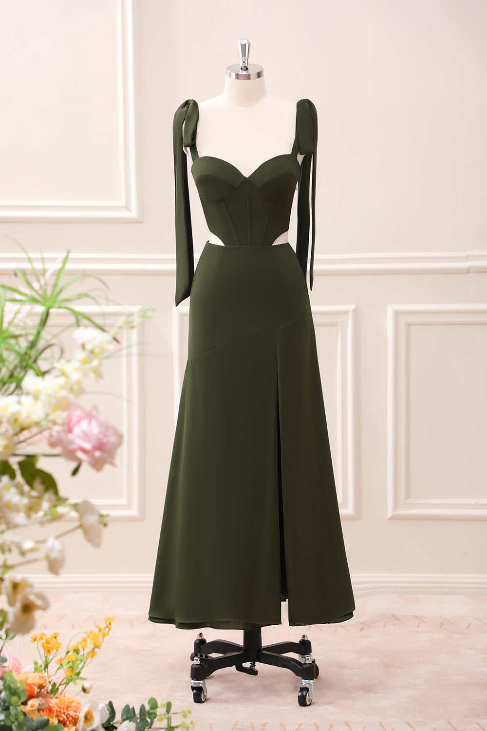 Olive A Line Sweetheart Spaghetti Straps Maxi Dress with Slit