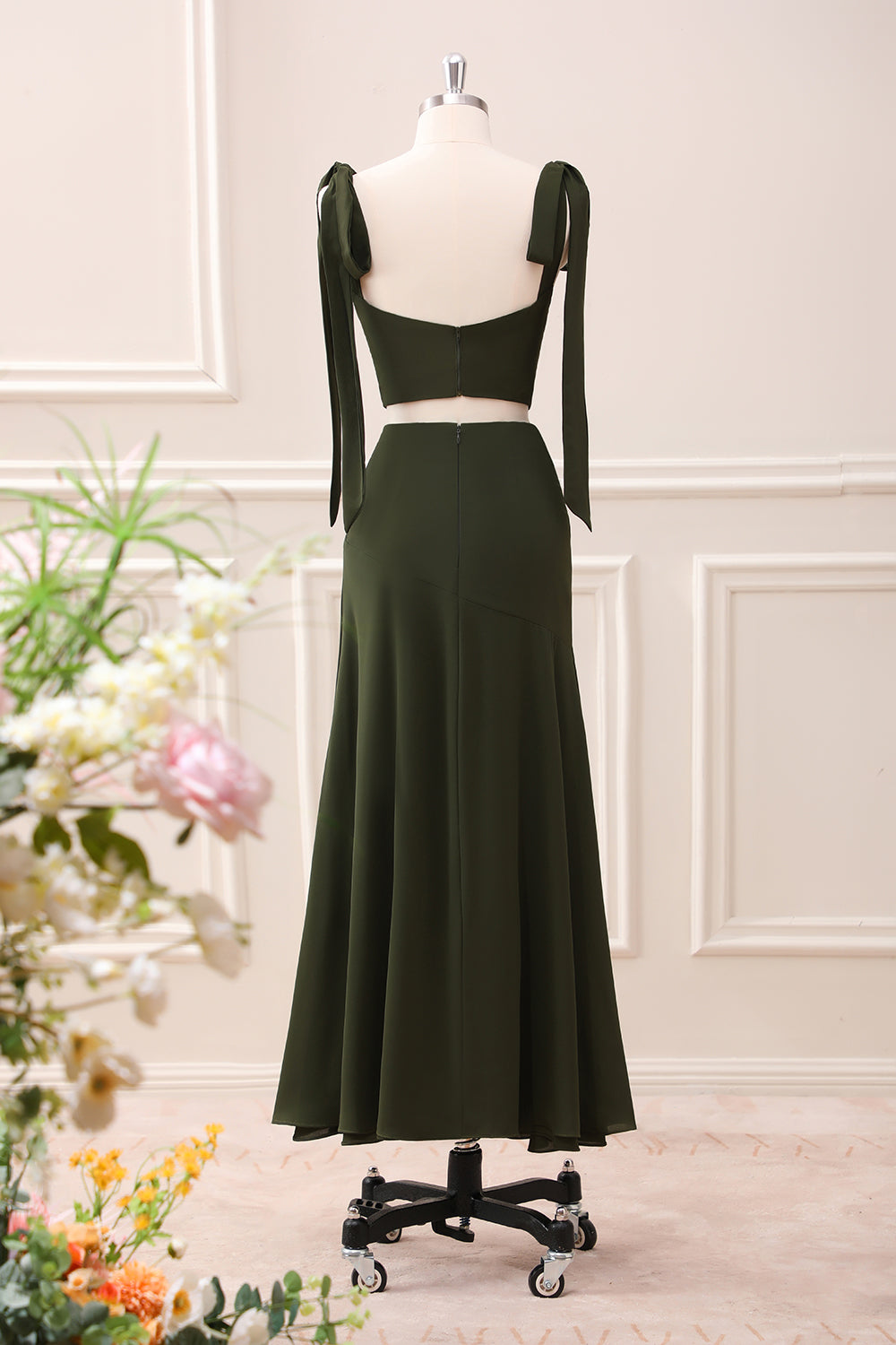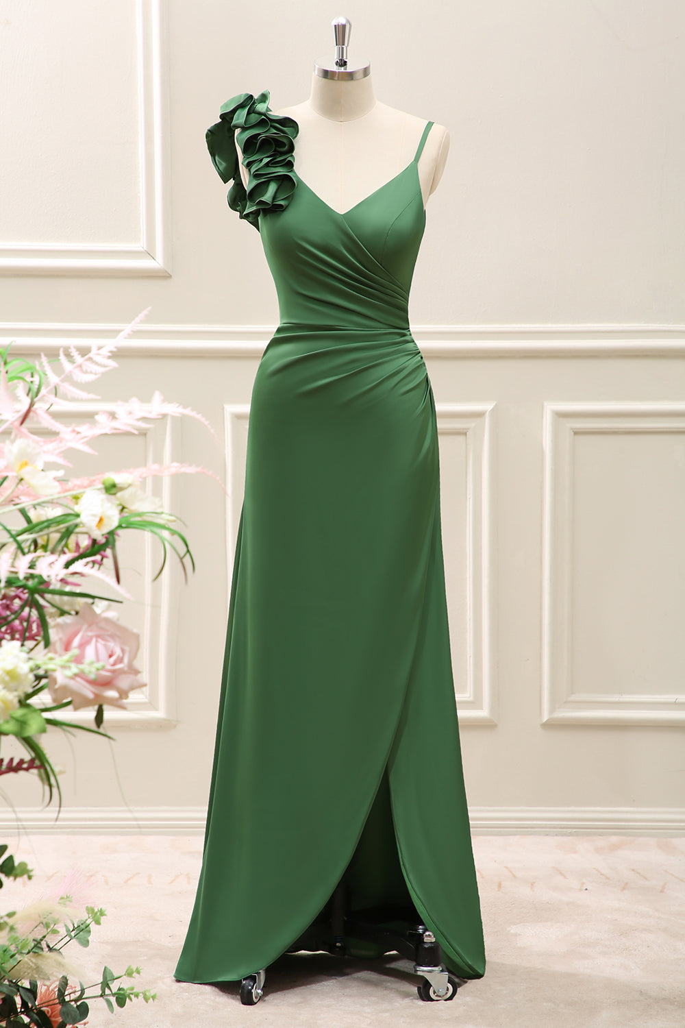 Olive Sheath Satin Maxi Bridesmaid Dress