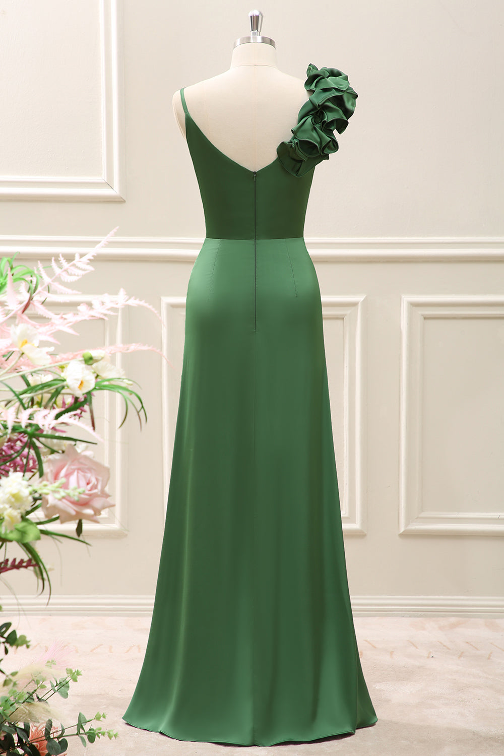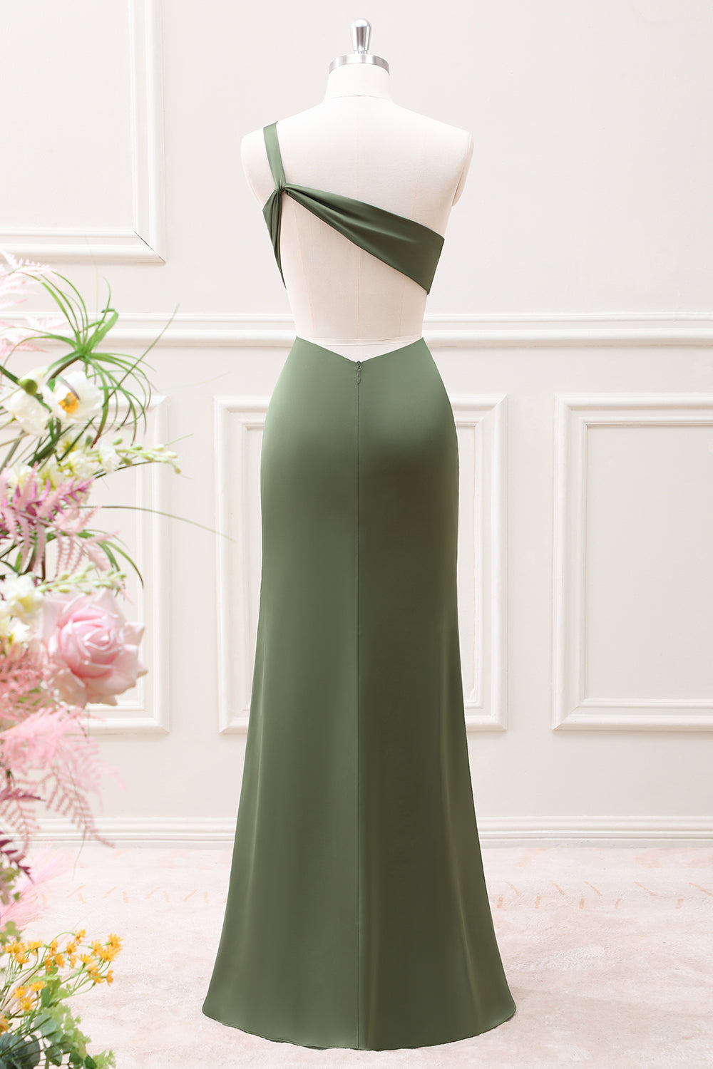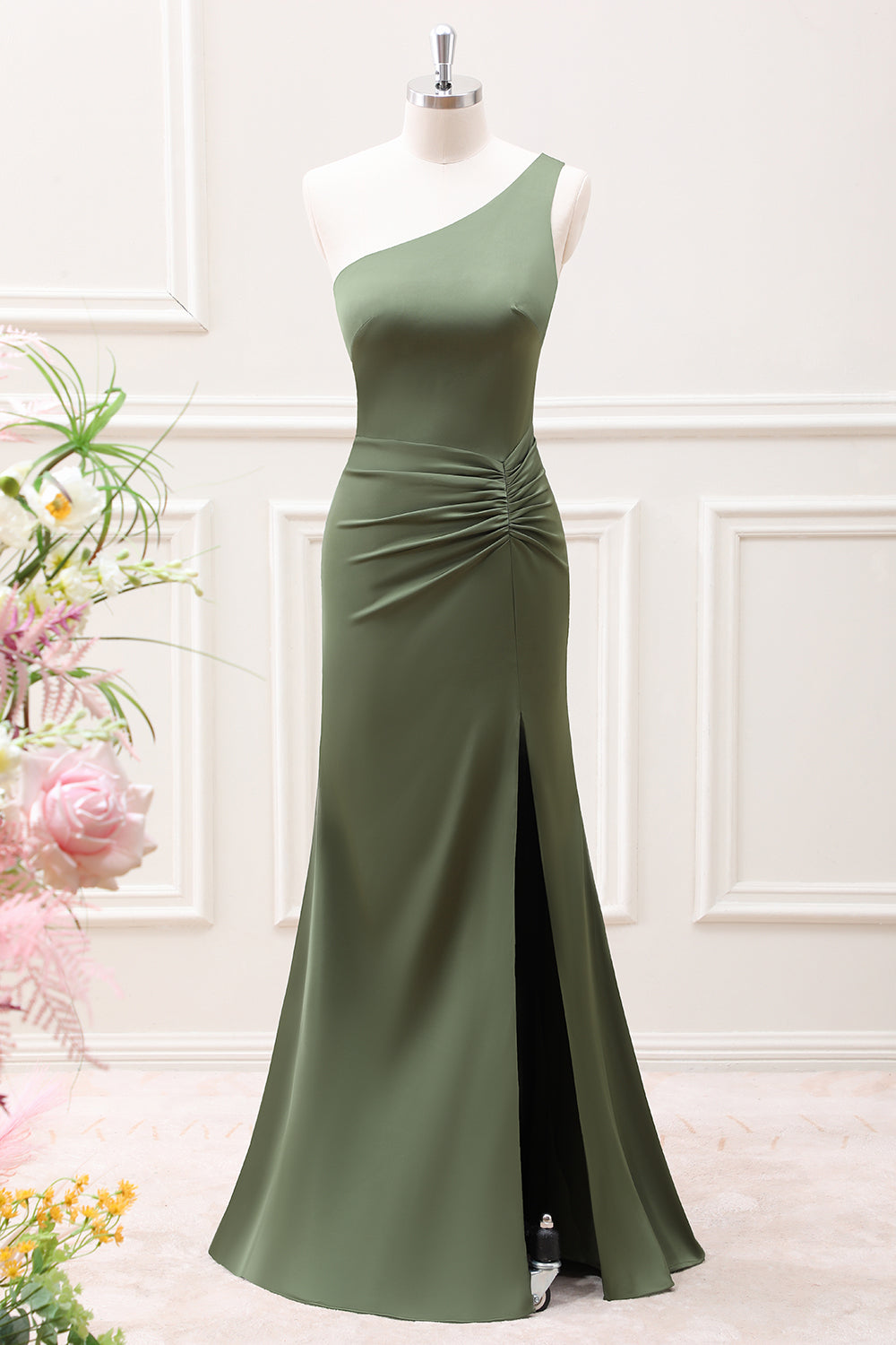Olive One Shoulder Long Sleeve Bridesmaid Dress