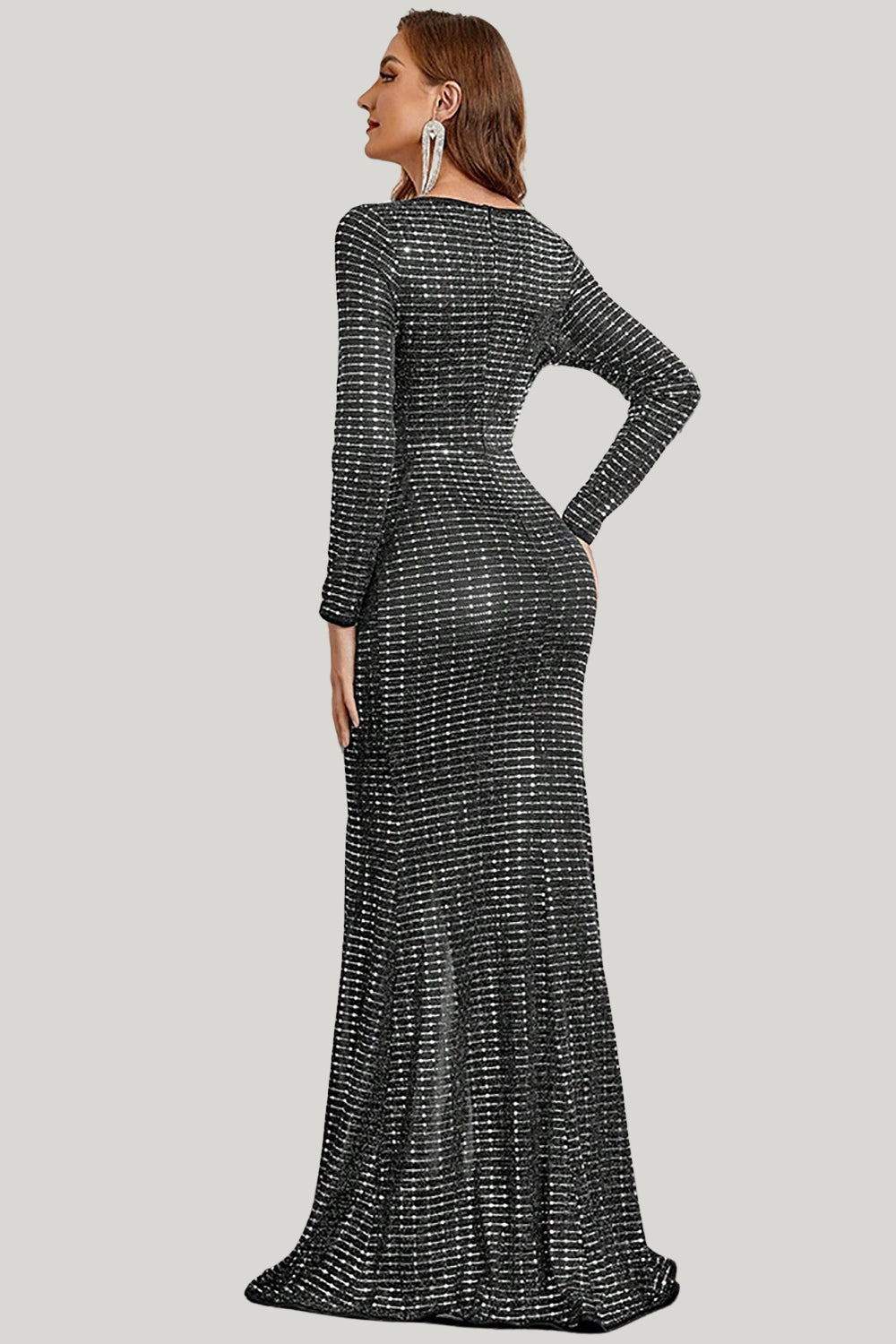 Mermaid Long Sleeve Black Tie Dress With Slit