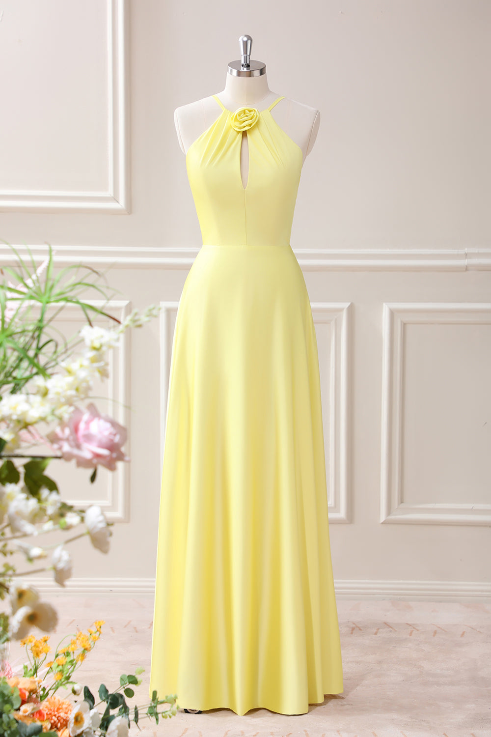 Yellow A Line Halter Cut Out Maxi Dress with Flower