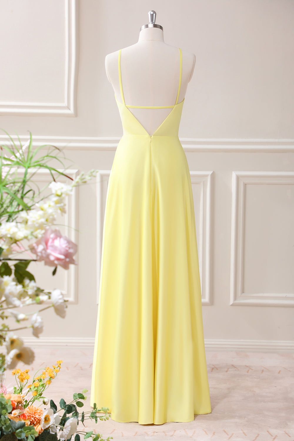 Yellow A Line One Shoulder Maxi Dress with Slit