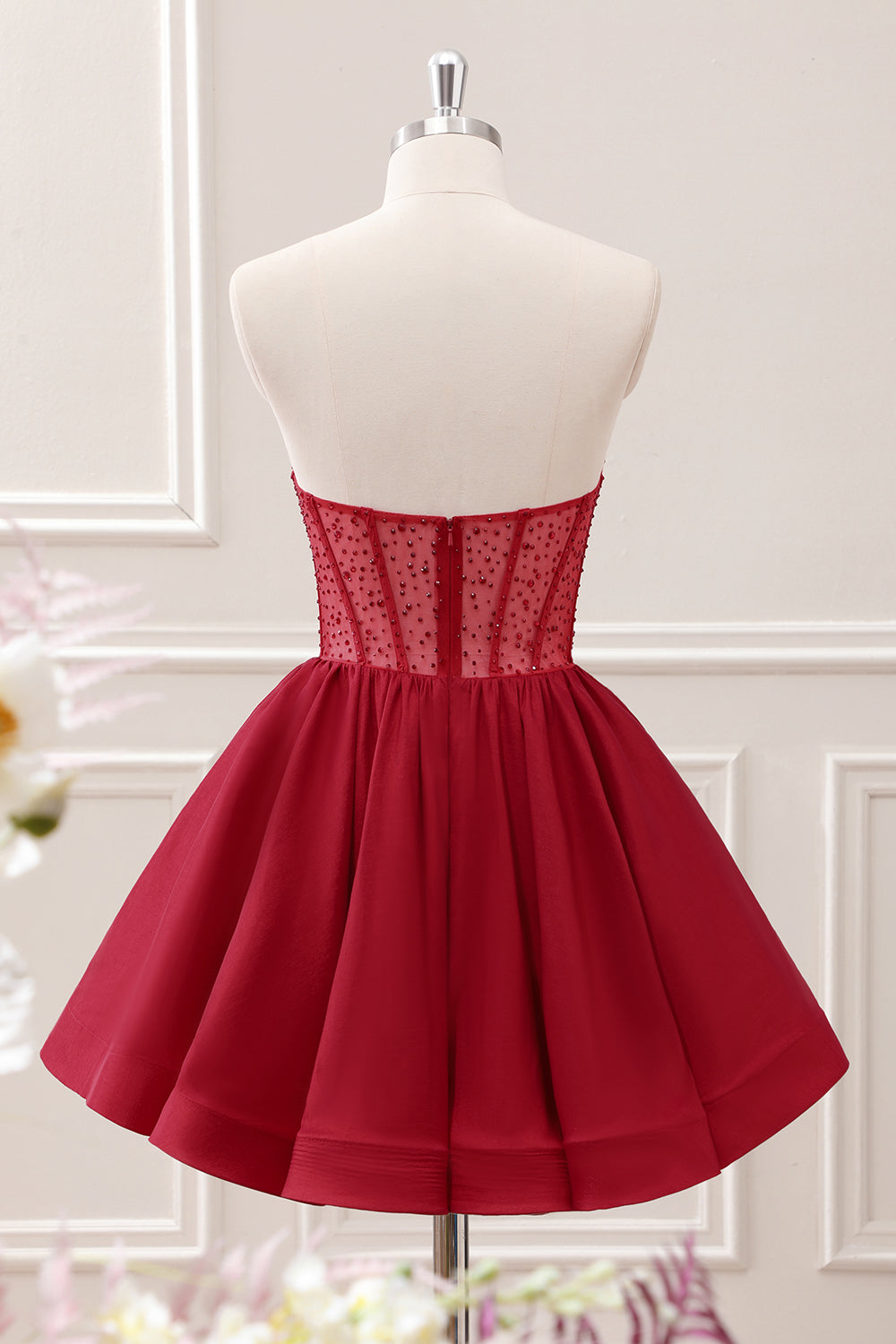 Red Strapless Beaded Corset Bodycon Homecoming Dress with Slit