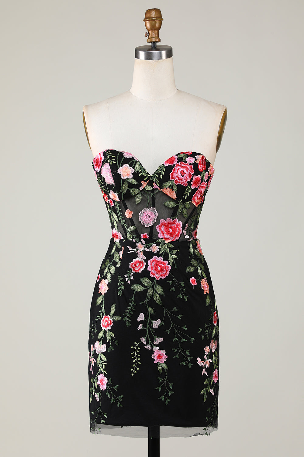 White Blue Floral A Line Strapless Corset Homecoming Dress
