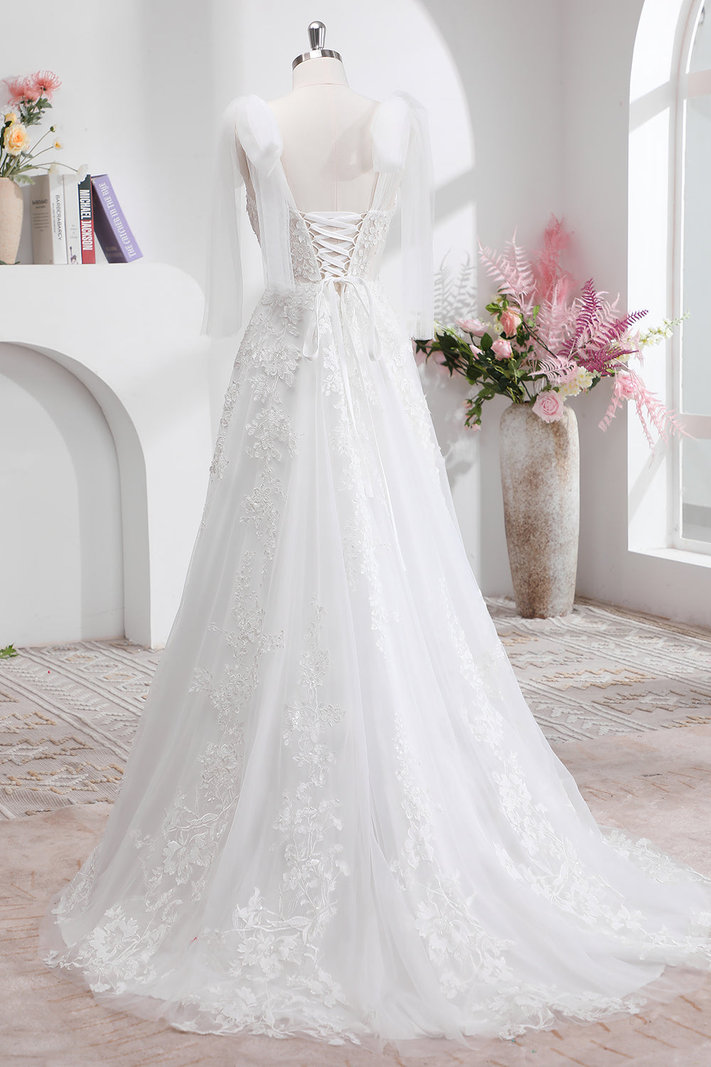 Princess White A-Line Lace Up Back Corset Wedding Dress with Appliques Lace