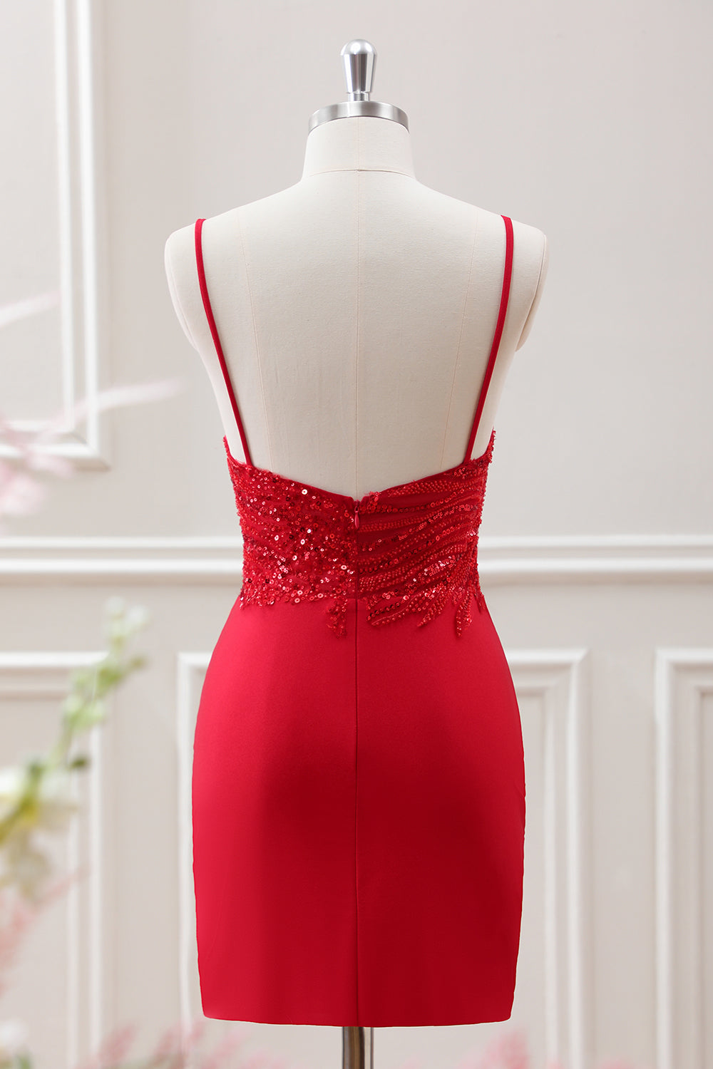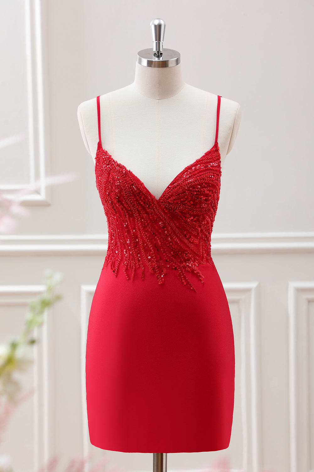 Glitter Red Spaghetti Straps Sequins Bodycon Mini Dress