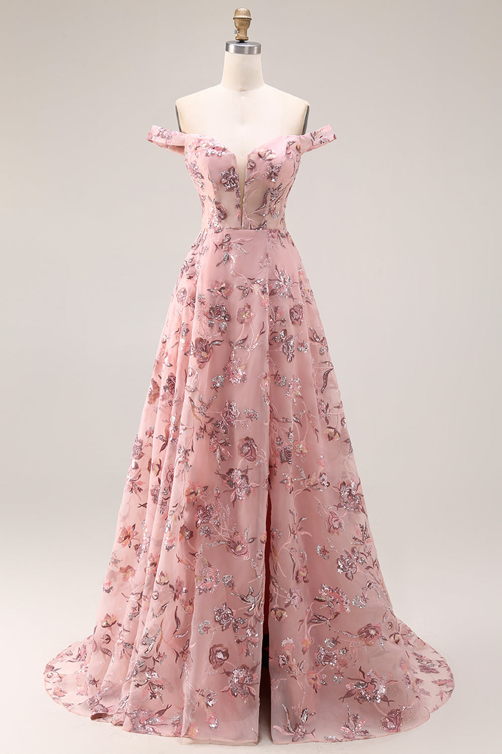 Off the Shoulder Corset Floral Blush A Line Prom Dress
