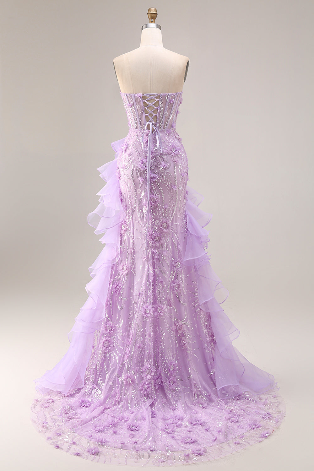 Sparkly Lilac Strapless Mermaid Corset Prom Dress with Ruffles