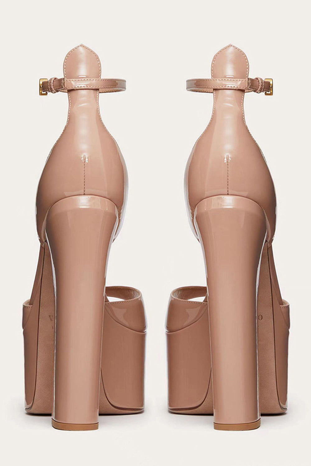 Black Platform Hunky Heel Sandals With Ankle Strap