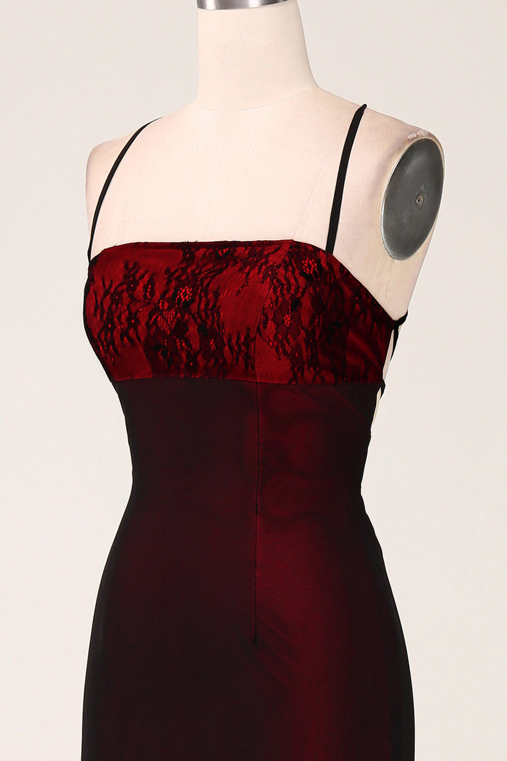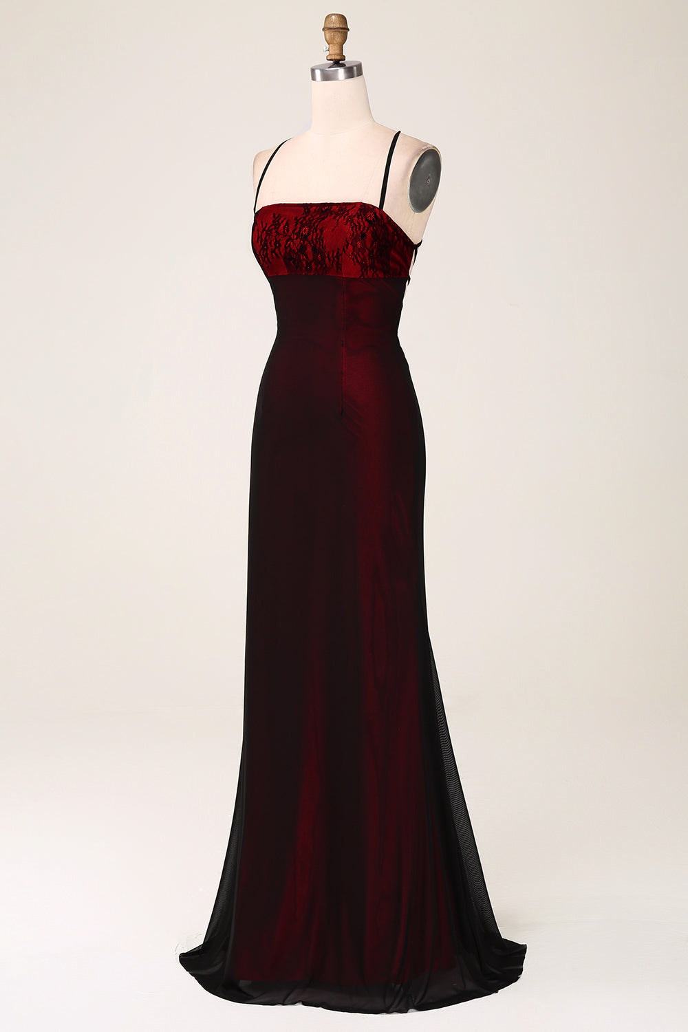 Home Bride Black Red Spaghetti Straps Sheath Maxi Dress with Lace-up Back