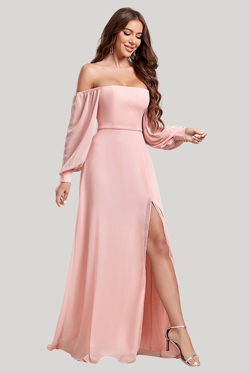Home Bride Blush A Line Off the Shoulder Maxi Dress with Slit