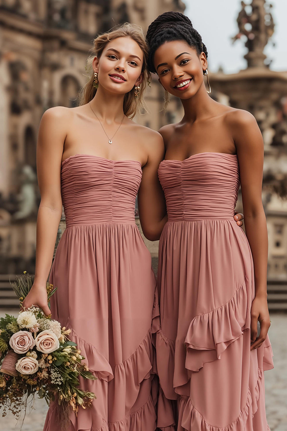 Home Bride Blush A-Line Ruched Strapless Bridesmaid Dress With Ruffles