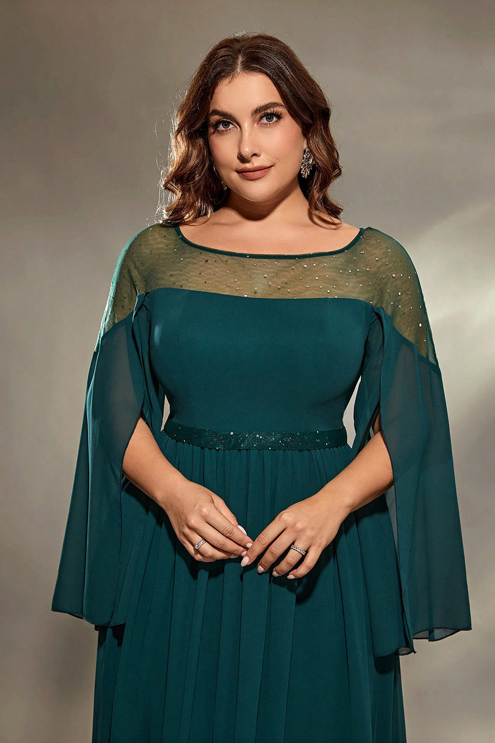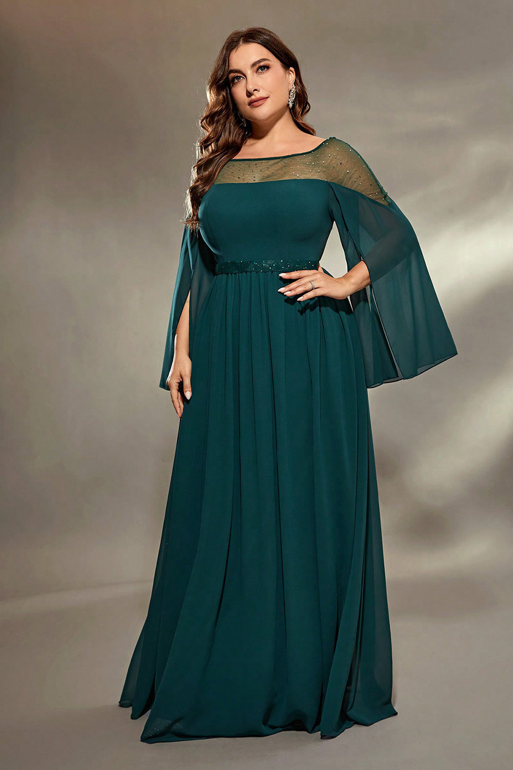 Dark Green Plus Size Bateau Neck Slit Sleeves Maxi Dress