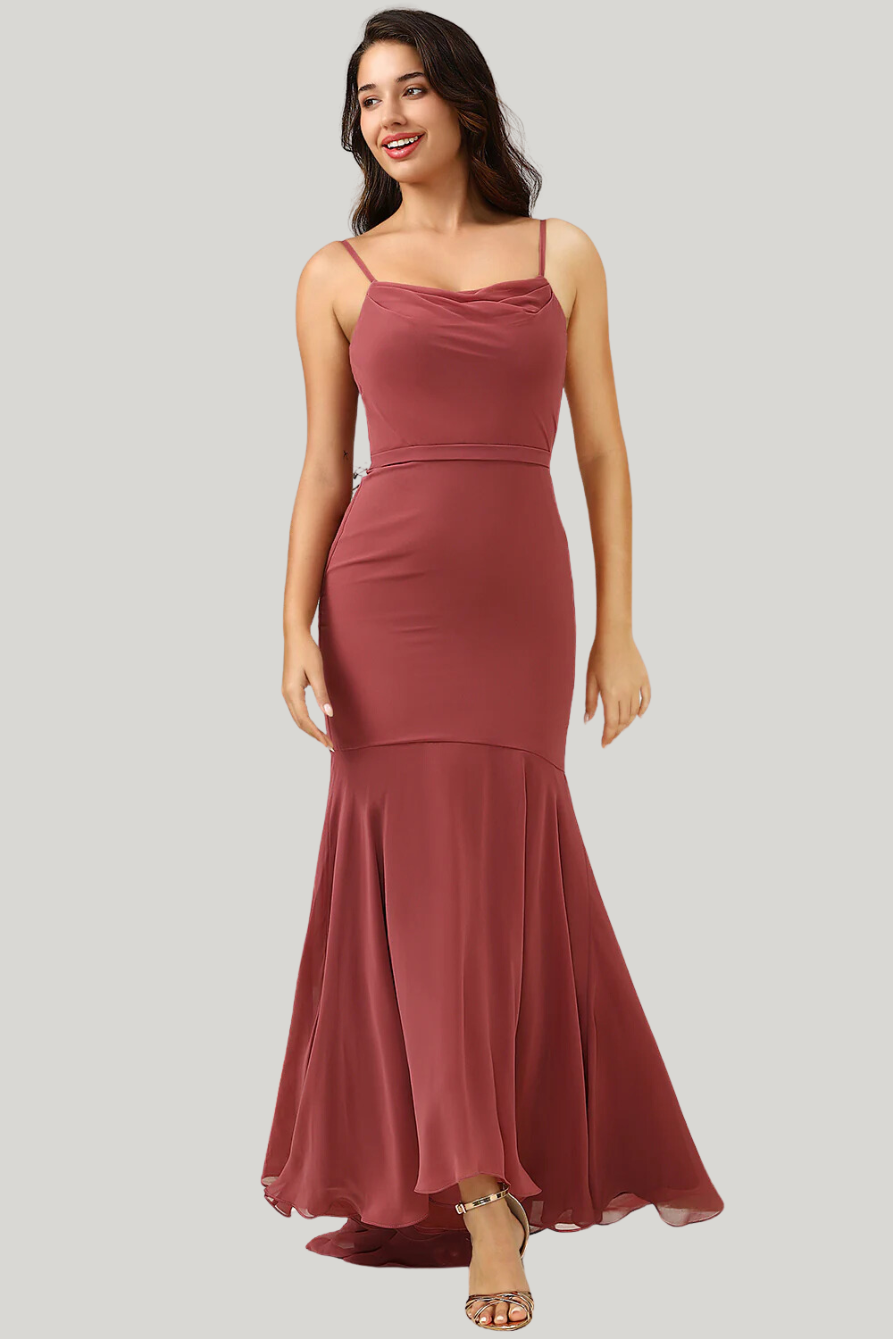 Home Bride Desert Rose Spaghetti Straps Mermaid High Low Dress