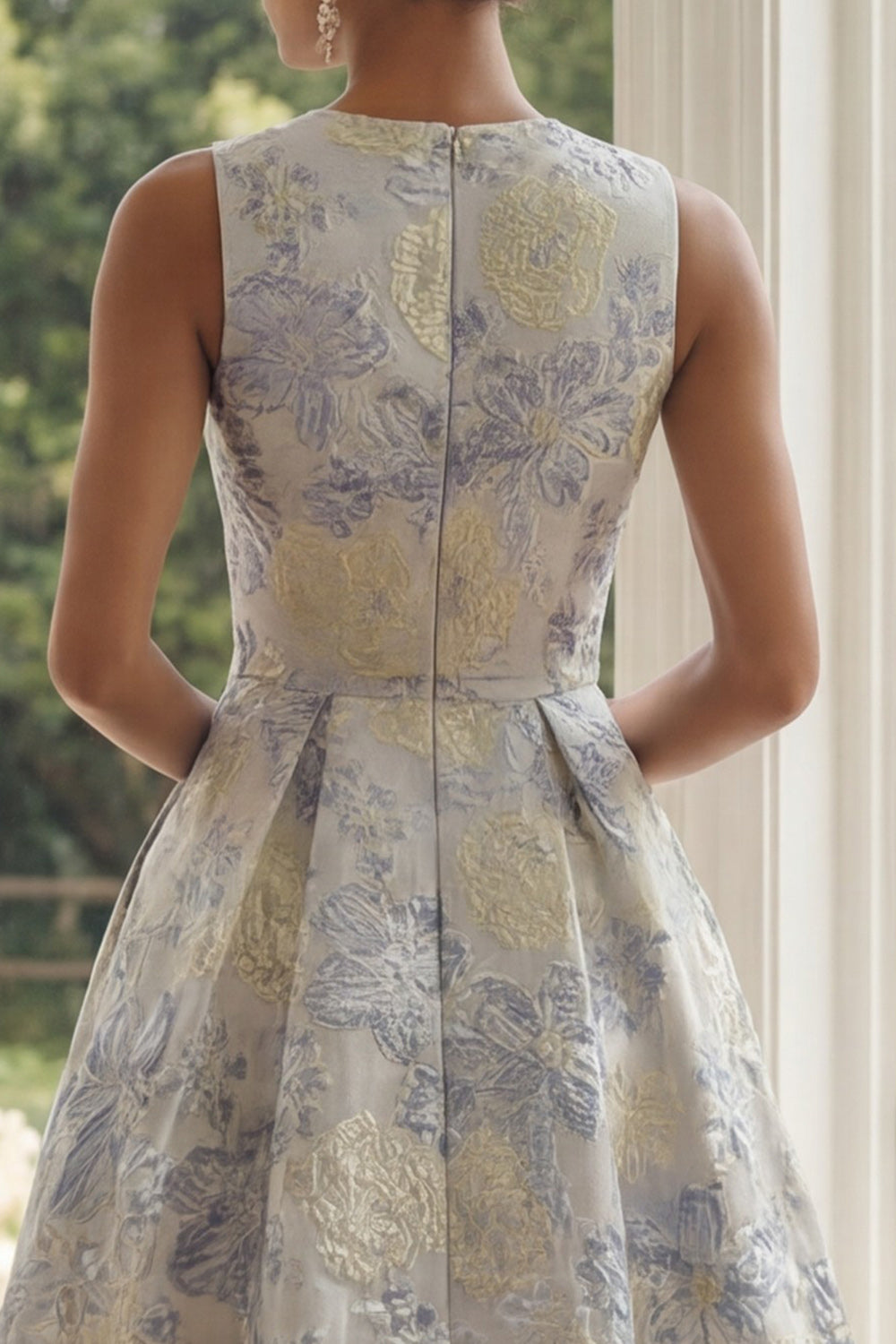 Dusty Blue A-Line Floral Wedding Guest Dress With Pockets